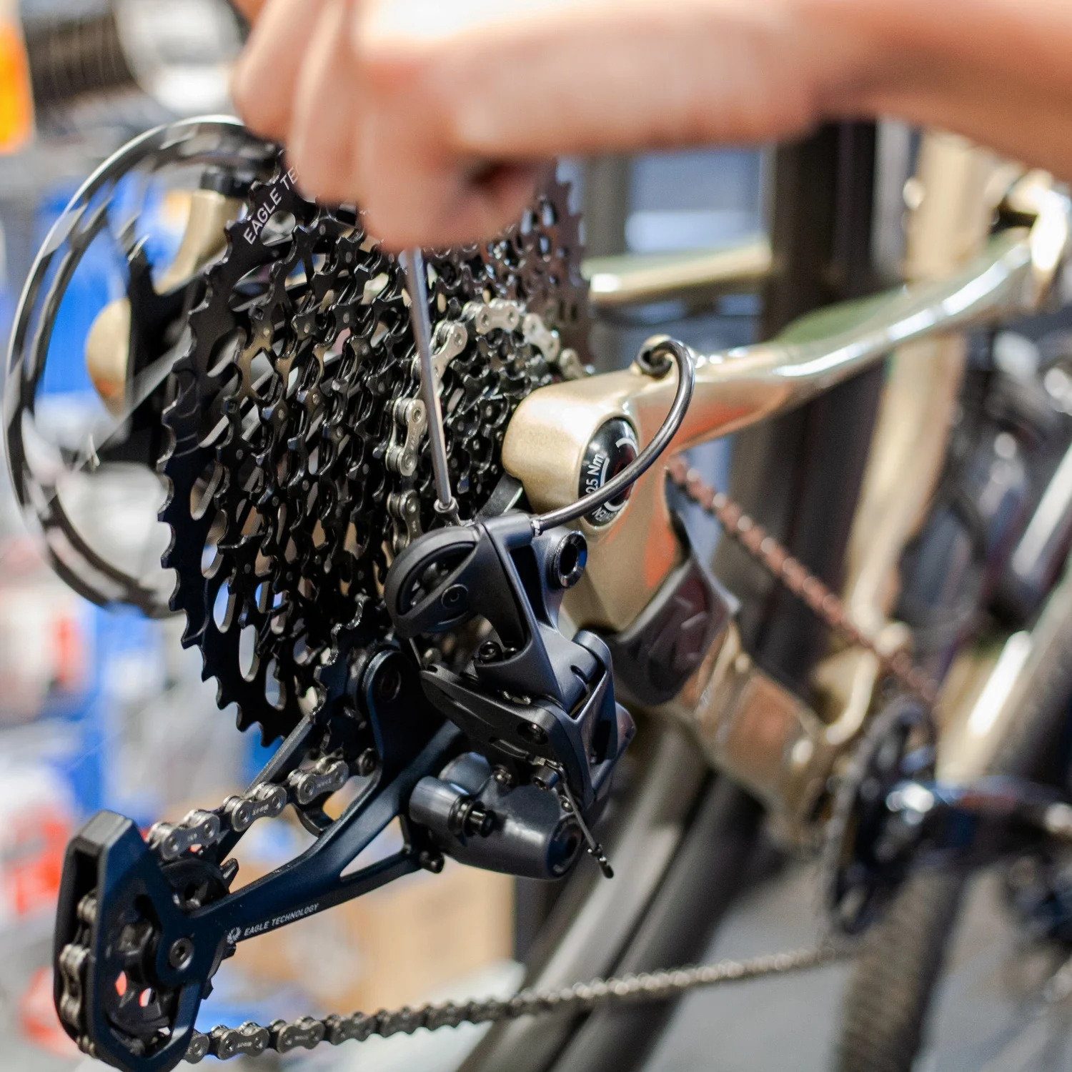 - Checken slijtage ketting, cassette en kettingbladen.